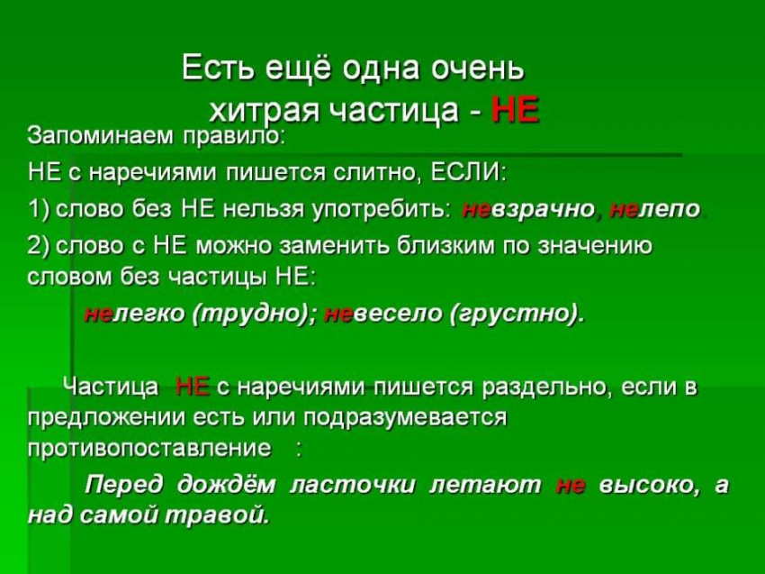 Частичка — Не употребляется слитно, когда наречие или же прилагательное можно заменить на слово-синоним без этой частицы.