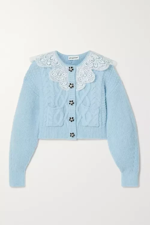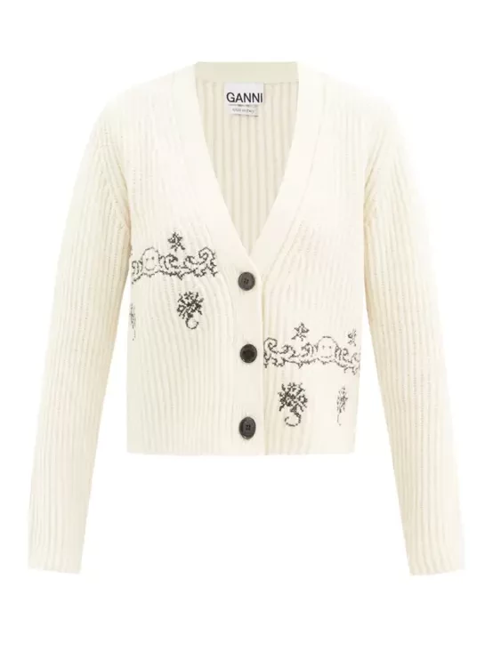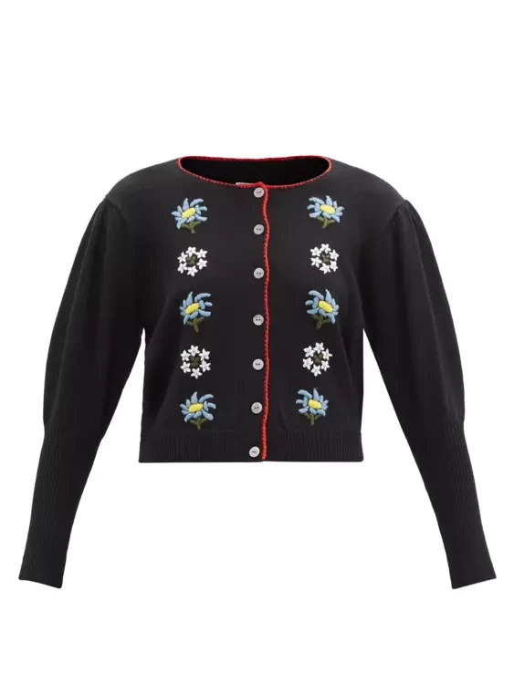 Пожалуй, главной поклонницей ярких и необычных кардиганов может считаться Эмили Синдлев. В гардеробе модницы можно найти стильную модель от Gucci, украшенную вишневым принтом и быстро ставшую бестселлером бренда, а также алый кардиган с нарядными пуговицами и объемными рукавами от Alessandra Rich. Стилизовать их стилист из Дании предлагает с не менее эффектными пастельными палаццо или брюками из металлизированной кожи. Укороченные кардиганы базовых оттенков также остаются актуальными – в свой гардероб их добавили Жанетт Мэдсен, Анук Ив, Айлин Кениг и Лаура Битллок.