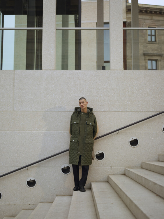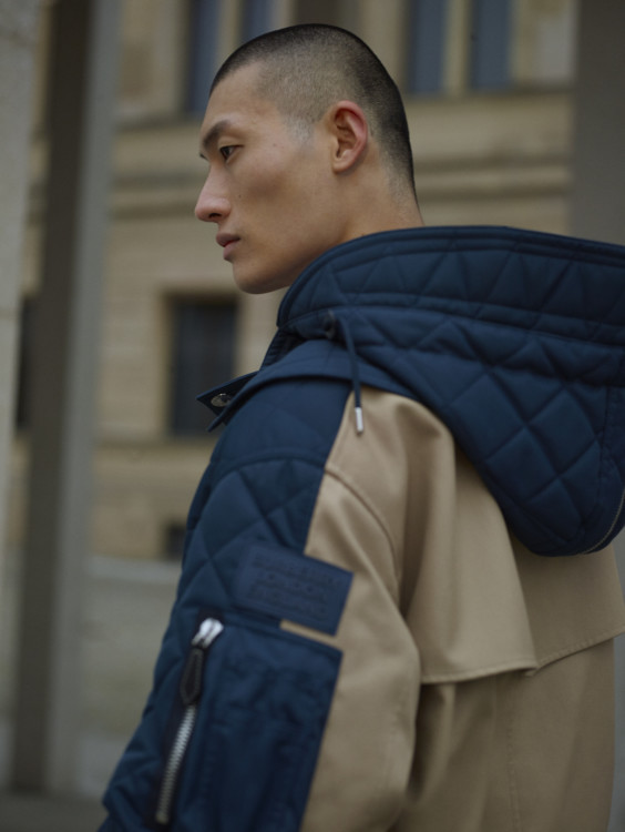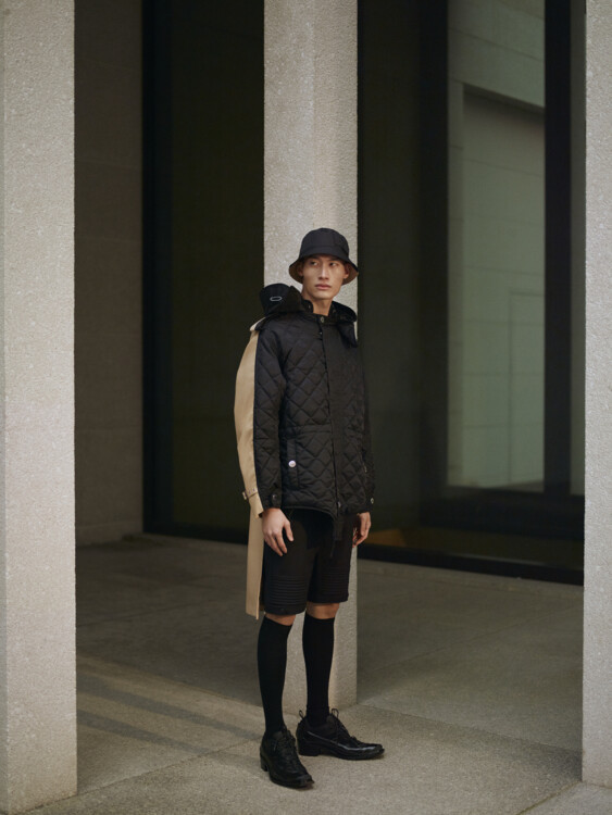 В основе коллекции из двадцати семи предметов лежит верхняя одежда, от стеганых пальто до бомберов и полевых курток — визитных карточек дома. В капсулу также входят жакеты и брюки, а также аксессуары: от панамок до рюкзаков, шарфов и сумок — для мужчин и женщин.