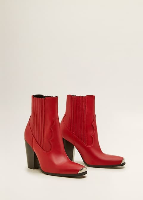 Скошенная форма каблука, узкий нос в комбинации с широким голенищем, а также декор в виде пряжек и ремней — все это главные составляющие модных ковбойских казаков.