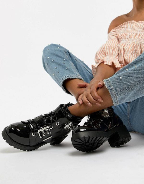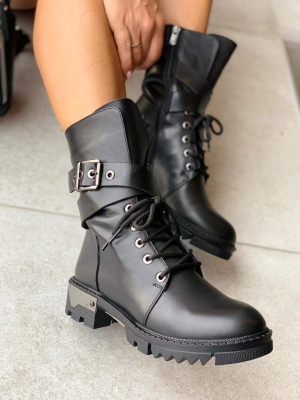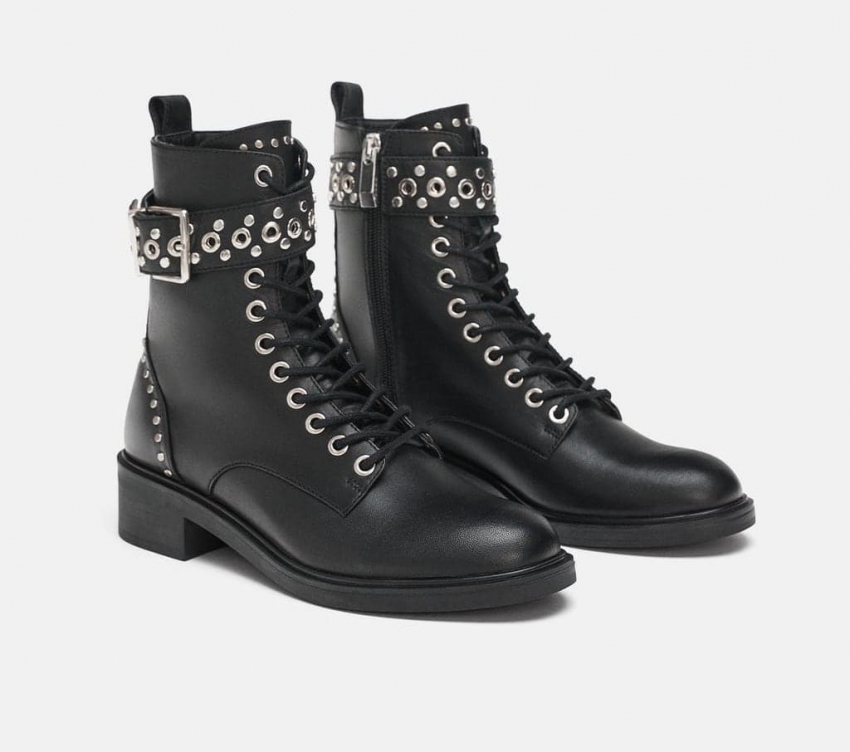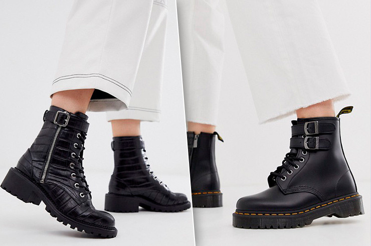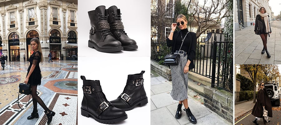 Ботинки могут быть украшены пряжками, шнуровкой, металлическими вставками, ремнями. Берцы — тренд, сочетающий в себе агрессивную брутальность и стиль милитари. Их можно носить как с модными джинсами, так и с романтичными женственными платьями.