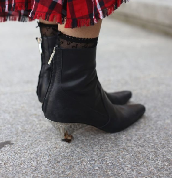 Оригинальный каблук — отличный вариант для создания нестандартного и интересного лука. Ботинки с легкостью могут вписаться в женственный образ, кэжуал и ретро стиль.
