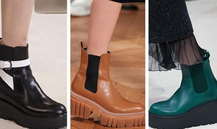 Осенью 2021 стоит обратить внимание на ботинки на сплошной объемной подошве: она может быть тракторной, в виде большого квадратного каблука или каблука-столбика. Ботинки на платформе смогут сделать образ утонченнее, поэтому лучше всего комбинировать их с легкими платьями.