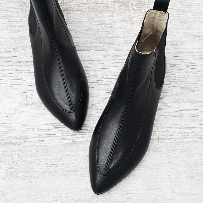 Острый нос может гармонировать как с едва заметным каблучком, так и без него. Лучше всего ботинки сочетаются с зауженными джинсами или брюками.