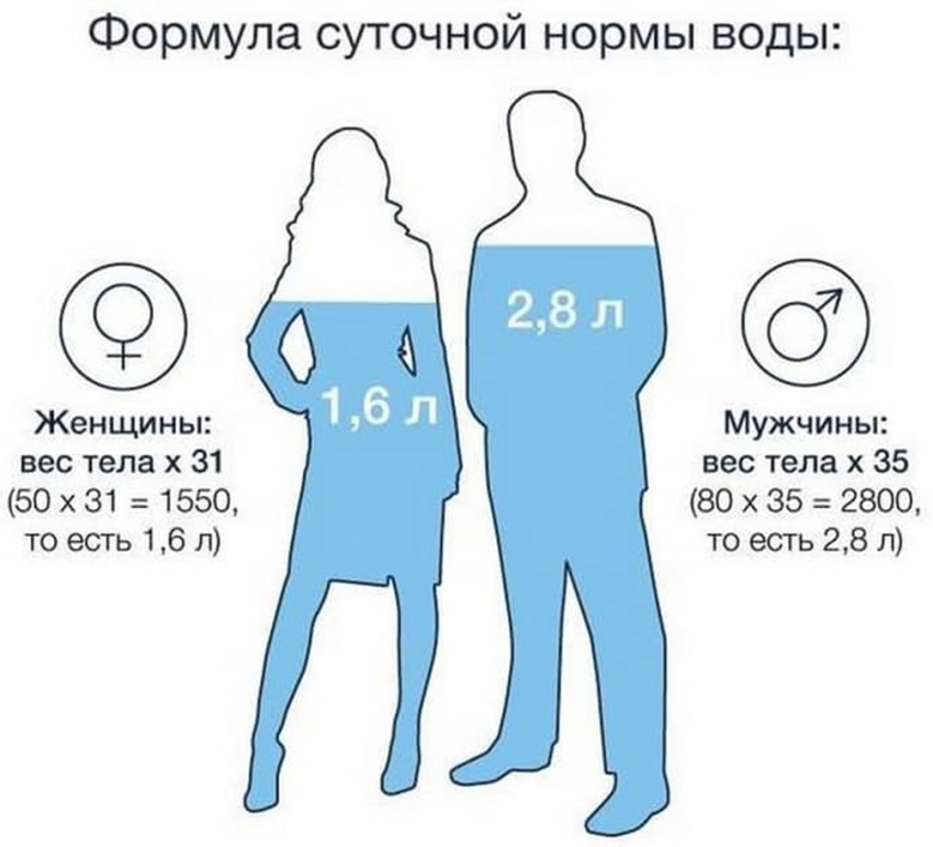 - Пить не менее 1,5 – 2 литров воды в день. Это нормализует обмен веществ и притупляет чувство голода, что помогает при любой диете.