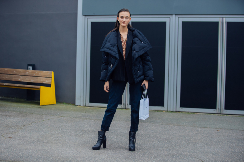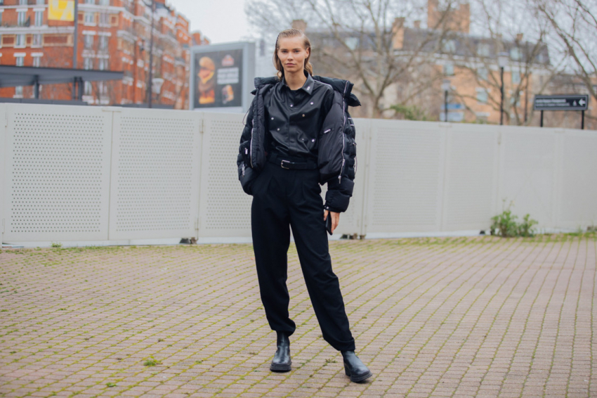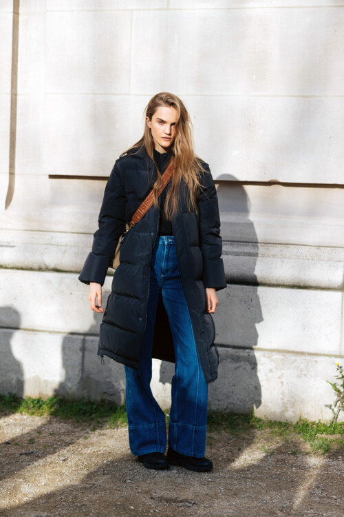 Для расслабленного образа лучшим вариантом станет ансамбль, состоящий из черного пуховика oversize кроя с любимой джинсовой парой: в ход идут вновь оказавшиеся на пике популярности скинни, брюки-клеш и slouchy.