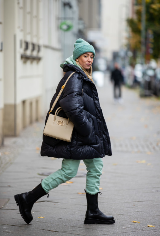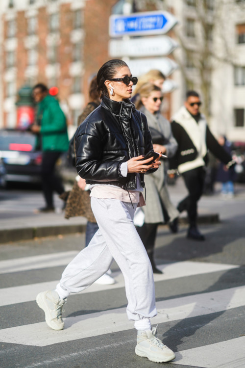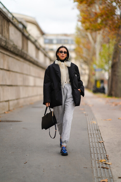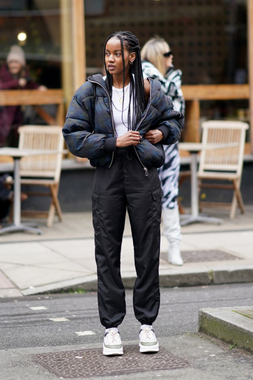 Затяжной локдаун сделал джоггеры настоящей must have позицией карантинного гардероба. Этой зимой модницы предлагают миксовать их с короткими или удлиненными черными пуховиками. Дополнить образ можно парой любимых кроссовок, популярными ботинками-челси или лоферами.