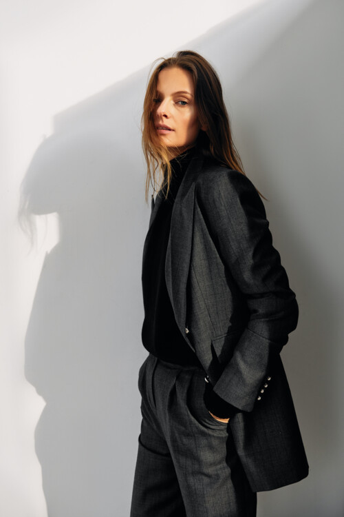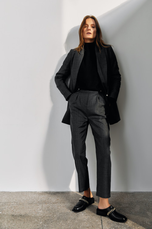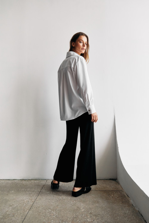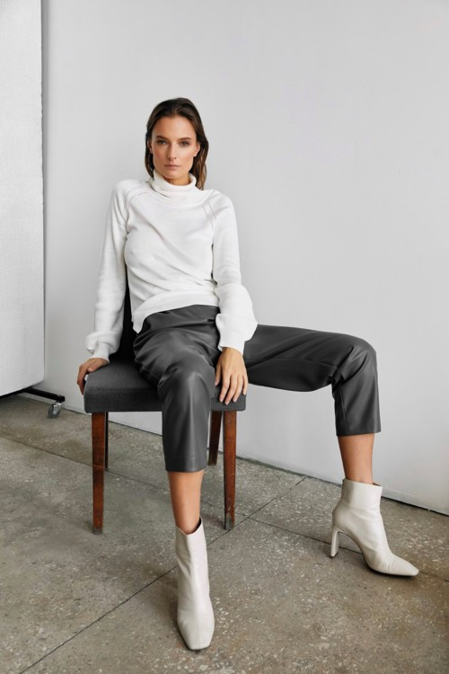KohaiБрюки + свитерЗимой хочется чувствовать максимальный комфорт, но при этом важно не забывать про соблюдение рамок дресс-кода. Так, если в спортивных джоггерах и худи можно отправиться на прогулку, то для повседневных дел лучше подойдут утилитарные брюки и базовый свитер. Одно из самых практичных решений на каждый день может выглядеть абсолютно по-разному. Украинский бренд Kohai предлагает несколько вариантов, которые придутся по вкусу каждой моднице. Наш фаворит: монохромный ансамбль в оттенках нюда, состоящий из лаконичного свитера и брюк-палаццо. Дополнить такой образ можно с помощью лоферов на каблуке и сумки-тоута.