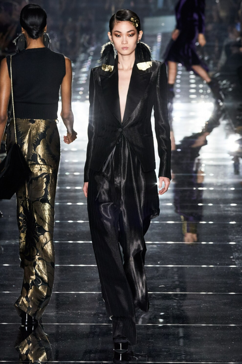 Alexander McQueenВ новых коллекциях осень-зима 2020/2021 дизайнеры уделили смокингам значительную долю внимания. В центре внимания оказались вечерние модели сложносочиненного кроя, пары с мерцающей нитью или смокинги из торжественного бархата. Так, Alexander McQueen сделали ставку на лаконичные брюки, но в то же время обыграли образ с помощью интересного жакета с шелковыми вставками, Versace предложили классический фасон смокинга, однако добавили к нему небольшие прорези на блейзере. Тем временем, Elie Saab признались в любви бархатной черной версии смокинга - такой костюм дизайнеры советуют сочетать с блузой в буржуазном стиле и туфлями-лодочками. Для новогодней ночи также подойдет смокинг из коллекции Tom Ford - свободные брюки-клеш и приталенный жакет из мерцающей ткани.