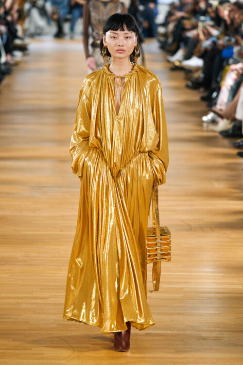 BurberryСамыми актуальными в этом сезоне стали платья в оттенке хромированного серебра: такие варианты можно найти в коллекциях Andrew Gn, Paco Rabbane, Alberta Ferretti, Sportmax, Altuzarra, Miu Miu, Erdem и Versace. Они хороши не только своей самодостаточностью, ведь им не нужны сложные обрамления в виде многоярусных украшений, но и бесконечной функциональностью: сочетать такие платья можно и с любимыми лодочками на каблуке, и с армейскими ботинками, и с пальто длины макси, и даже с объемным пуховиком. Еще одними фаворитами сезона стали платья с золотистым отблеском, как в коллекциях Emilia Wickstead и Y/Project. Лучшими союзниками таких моделей станут популярные геометрические сумки и обувь с квадратным мысом. Платья с эффектом металлик станут хорошей инвестицией в базовый гардероб, ведь дизайнеры настоятельно рекомендуют не скромничать и носить их не только по особым случаям, но и в будни.