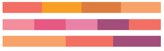 Палитра «Мерцающий закат», напротив, производит очень свежее, радостное впечатление благодаря горячим розовым оттенкам, сияющему желтому, цвету папайя, модному цвету маджента.