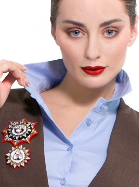 - не надевайте брошь с колье, подвесками, кулонами и чокерами - это явное нарушение меры. Также брошь должна находиться достаточно далеко от сережек и соответствовать им по тону;