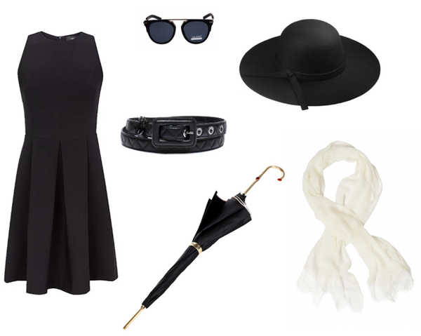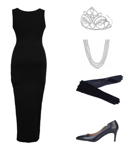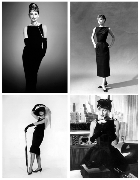С помощью этого приема Одри старалась отвлечь внимание от небольшой груди и выраженных ключиц. Плечи, наоборот, актриса оставляла открытыми, подчеркивая их красоту парой высоких перчаток. Классические образы гламурной Холли Голайтли завершают широкополая шляпа и большие очки, многоярусное жемчужное колье в тандеме с тиарой и, конечно же, знаменитый мундштук.