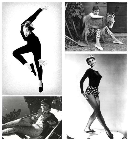 Вот в чем Одри Хепберн, без сомнения, законодательница, так это в моде на укороченные брючки и милые шортики. Черные скинни, водолазка и лоферы – это классический образ из фильма «Забавная мордашка», в котором актриса продемонстрировала удивительный танцевальный талант. Также ей прекрасно удавалось сочетать капри и чиносы с джемперами, кардиганами, рубашками и объемными свитерами, имеющими воротник-хомут. Кинодива предпочитала графические принты: клетку, полоску, горошек.