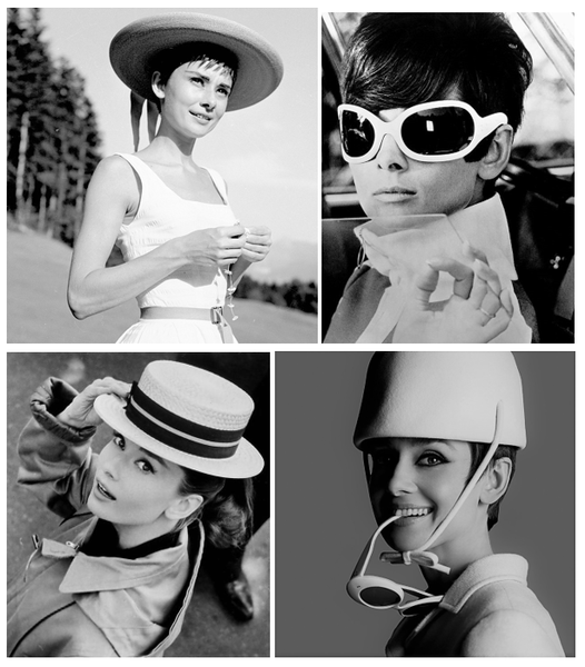 Но самой большой любовью Одри Хепберн были разнообразные шляпки и платки (а мы помним, что Коко Шанель начинала именно как дизайнер головных уборов). Нередко утонченный образ завершали большие солнцезащитные очки в пластиковой оправе и массивные браслеты. Серьги кинодива, напротив, выбирала очень скромные и минималистичные: пуссеты или капельки, а зачастую и вовсе обходилась без них.