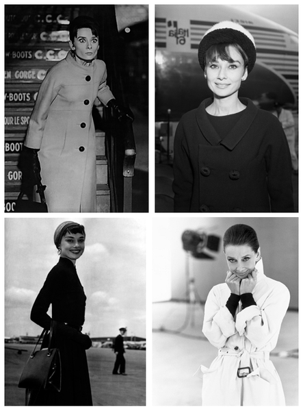 Верхняя одежда Одри Хепберн тоже вызывала у поклонников восхищение. Благодаря актрисе в моду вошли бежевые тренчкоты (военные плащи и пальто в военном стиле с широкими). Пальто Одри выбирала строгих силуэтов, и они сидели на ней как влитые.