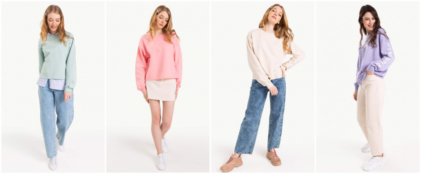 В тренде многослойность. Свитшоп или джемпер не слишком плотной вязки помогут создать нужный эффект. Носите его поверх рубашки, на платье или просто расслабленно накидывайте на плечи. Такая дополнительная деталь повысит ваш скилл комбинирования до 80-го уровня. Наиболее подходящие оттенки: пепельно-розовый, мятный, молочный.