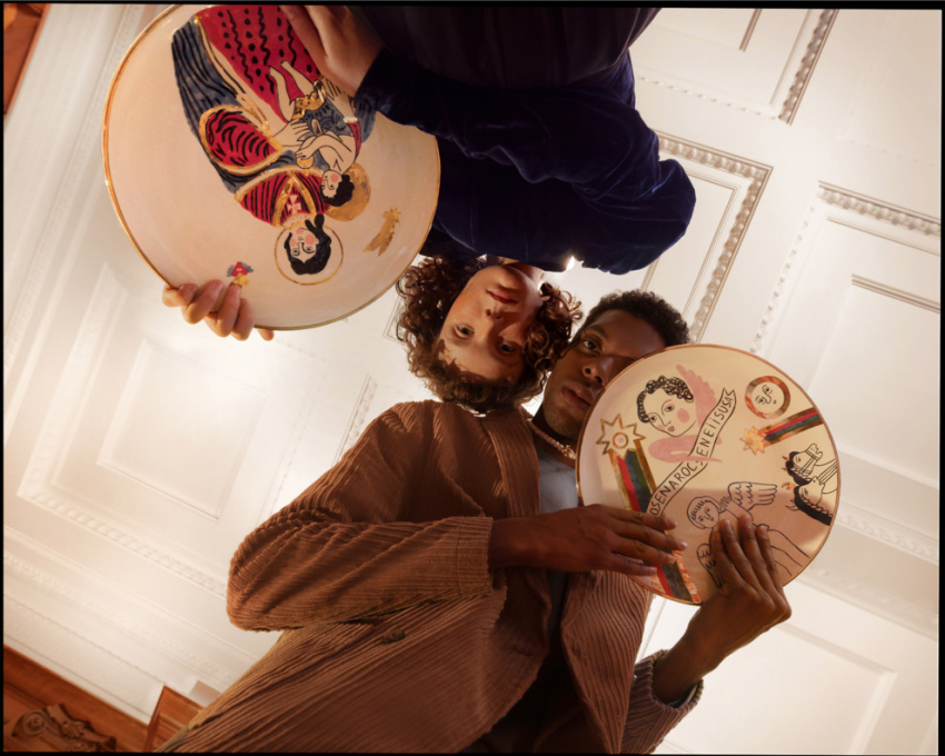 "Вера в сказку и чудеса, происходящие в новогоднюю ночь, объединяют самых разных людей, – рассказывает со-основательница Gunia Project Мария Гаврилюк. – Именно эти эмоции мы хотели и передать в нашей съемке. При создании этой коллекции мы вдохновлялись эстетикой народных икон на стекле, ведь своей неидеальностью и наивностью они как раз и символизируют всю искренность чувств".