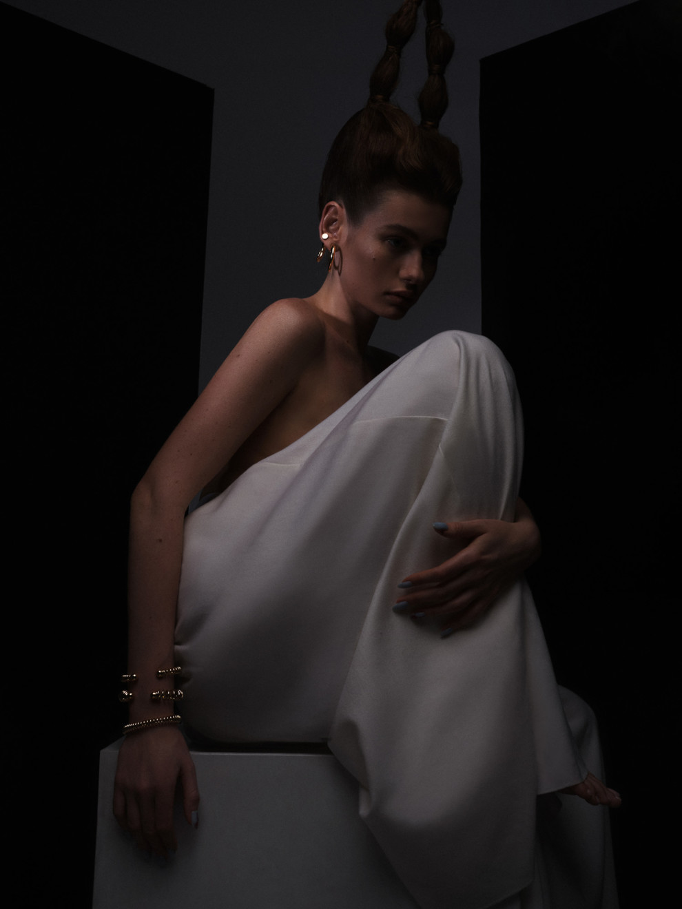 Стилист и художник по костюмам Соня Солтес продолжает работу над брендом-сериалом LUTIKI. Первой метафизику нового релиза LUTIKI опробовала на себе певица Луна — она снялась в лукбуке коллекции в роли натурщицы к штудиям скульптора Николая Бранкузи. Его пластичными работами творческая команда вдохновлялась, работая над съемкой.