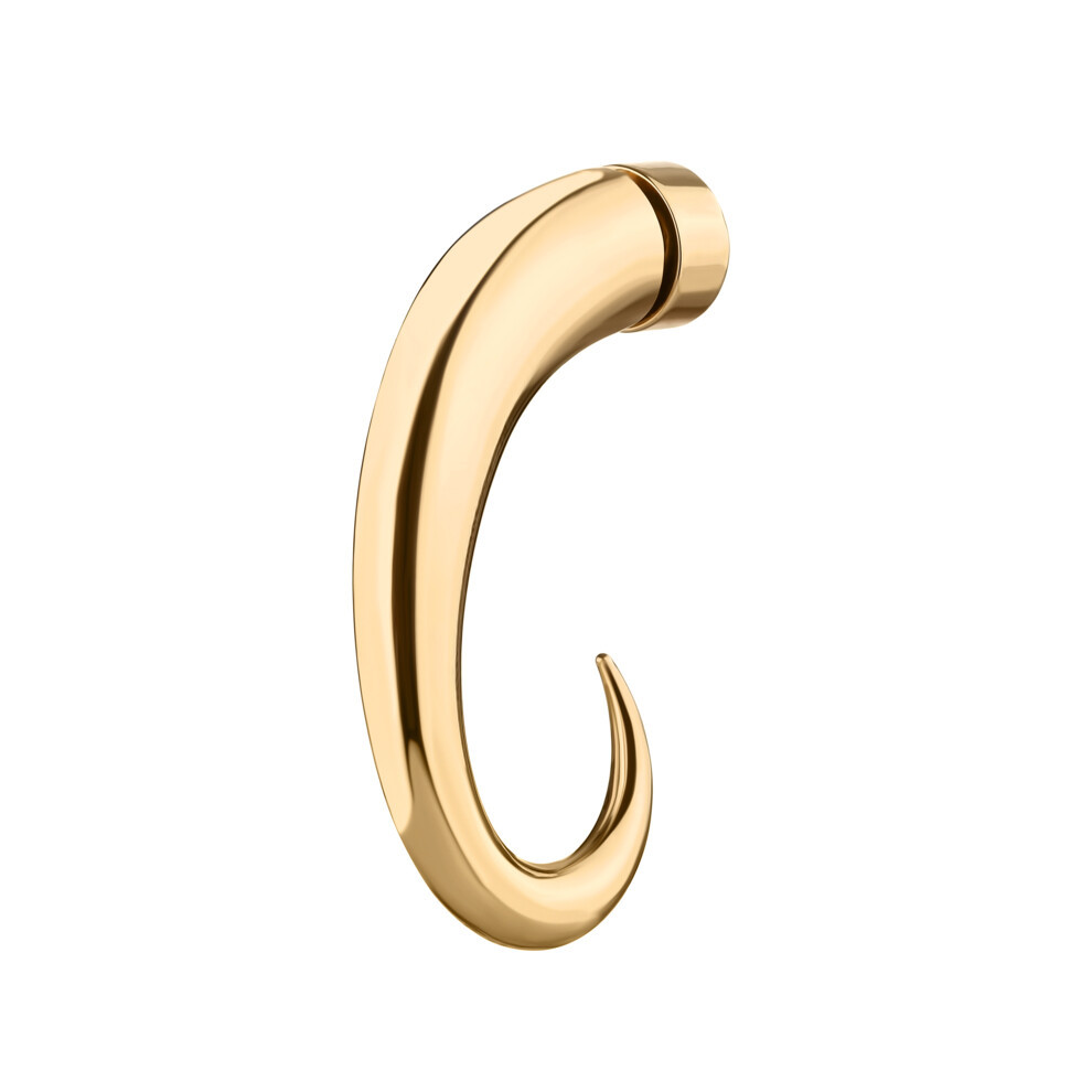 Дизайнер играет с символами цикличности жизни, духовной и физической силы. Применяет магнетизм в буквальном смысле — моносерьга-рог, повторяющая дизайн традиционных островных украшений, держится на мочке уха при помощи магнита.