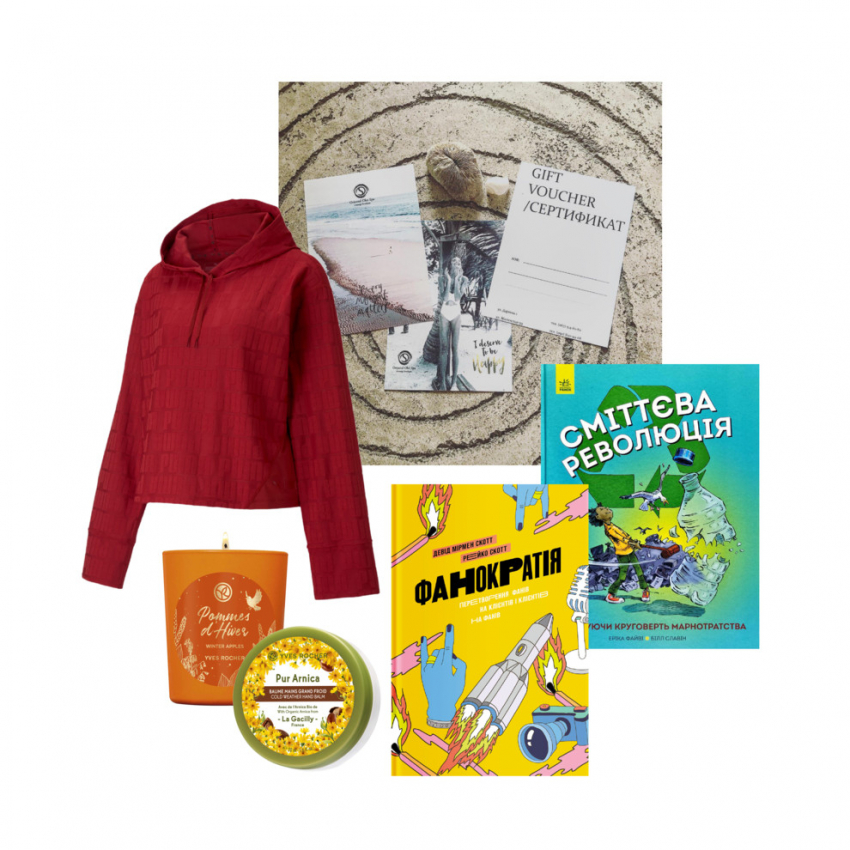 Дарувати близьким на свята люблю корисні речі, якими б сама користувалася. І такі, які створюють настрій, викликають приємні емоції. Ароматизовані свічки на рослинній основі, якісний крем для тіла й рук, книги, курс масажу, заняття малювання й набори для малювання, світшот з перероблених РЕТ-пляшок. Завжди шукаю подарунок зі змістом, який збагачує людину знаннями, емоціями, місією.