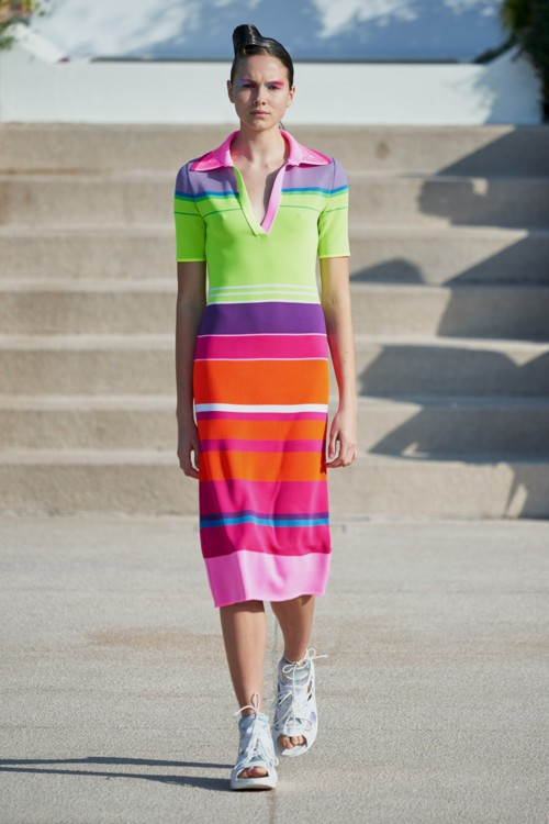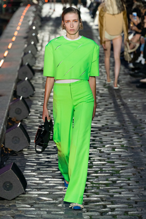 В весенне-летних коллекциях прошлых сезонов дизайнеры в большинстве своем фокусировались на двух неоновых оттенках, желтом и зеленом, но в этом году палитра стала куда шире: кислотные оранжевый, красный и уже культовый цвет – фуксия.