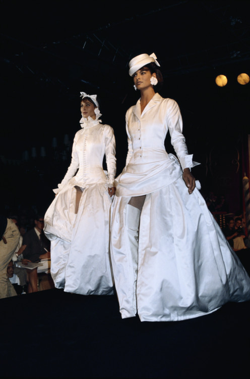 Кристи Тарлингтон, Линда Евангелиста, Клаудия Шиффер, Наоми Кэмпбелл и Летиция Каста – всех этих девушек помимо эффектной внешности объединяет головокружительная модельная карьера. В 1990-х годах они были главными супермоделями, музами дизайнеров и иконами красоты. Сейчас же их выходы до сих пор вспоминают с упоением, а свадебные платья, в которых они закрывали шоу модных Домов, являются образцом для многих современных невест. Vogue.ua вспоминает легендарные свадебные платья супермоделей 1990-х годов на подиумах.