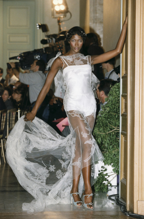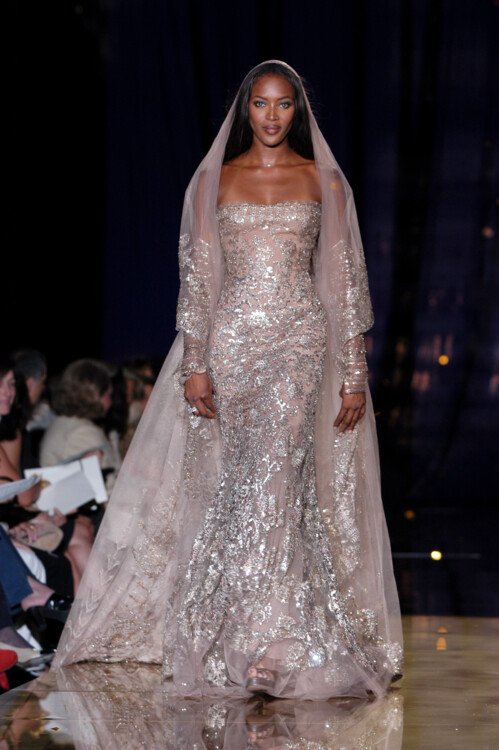 Наоми Кэмпбелл – одна из самых известных супермоделей, которая активно работает и сегодня. "Черная пантера" получила свое прозвище благодаря размеренной кошачьей походке на подиуме. Каждый ее выход сопровождался восторженными взглядами и аплодисментами. Так, на шоу Versace Couture весна-лето 1992 она продемонстрировала свадебное платье в стиле барокко, у Guy Laroche Haute Couture весна-лето 1992 вышла в мини-платье с длинным полупрозрачным шлейфом, а в коллекции Elie Saab Haute Couture осень-зима 2003/2004 закрыла показ в мерцающем свадебном платье.