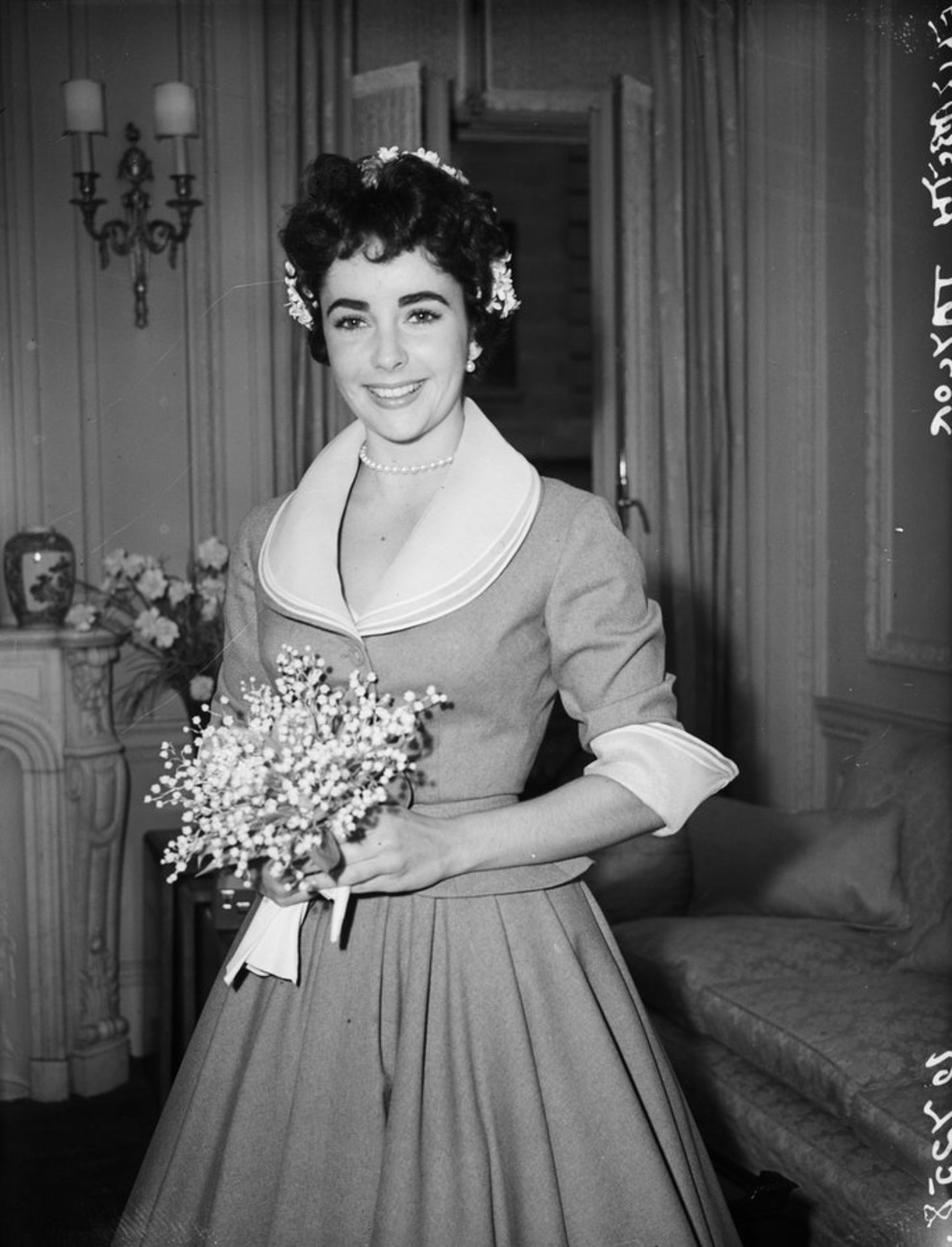 Хотя Элизабет Тейлор восемь раз была замужем, она только один раз надела традиционное свадебное платье на церемонию бракосочетания. Во всех остальных случаях Элизабет предпочитала то элегантные костюмы-двойки, то цветные подвенечные платья. Vogue.ua вспоминает все свадебные образы Элизабет Тейлор.