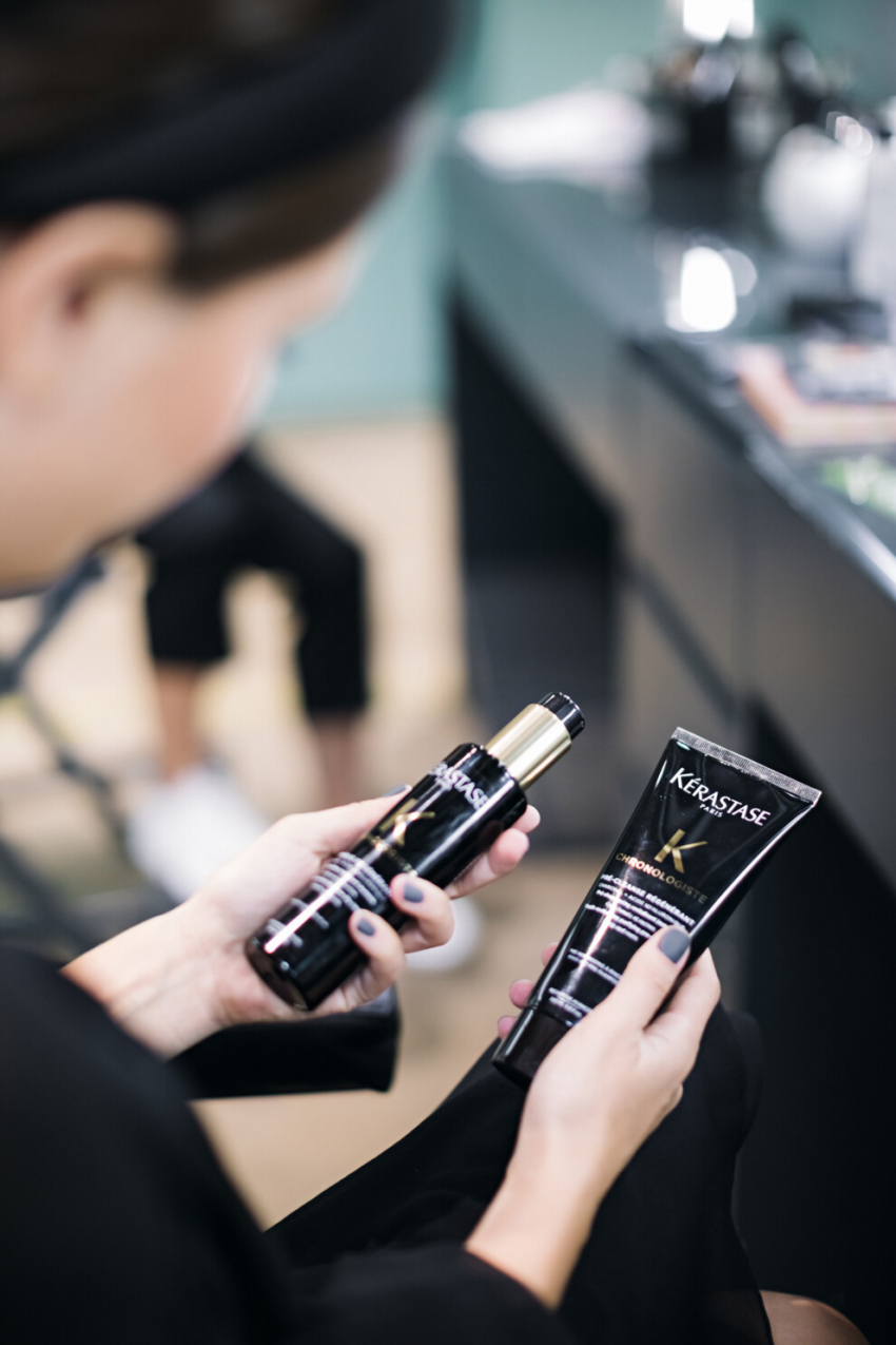 Начало осени ознаменовалось выходом обновленной гаммы средств Kerastase Chronologiste, которую поклонники марки ждали с особым нетерпением. Она не просто помогает ухаживать за волосами, но и способствует их регенарации и ревитализации, а также является отличной профилактикой старения кожи головы благодаря витамину Е, гиалуроновой кислоте и молекуле абиссина в составе. Достигнуть необходимого эффекта помогают шесть средств, входящих в линейку – клинсер, шампунь-ванна, маска, термозащитное средство, парфюмированное масло-дымка и сыворотка, которые можно использовать как дома, так и в рамках полноценной уходовой процедуры в салоне. Первыми смогли протестировать новую гамму гостьи салона Backstage. Рассказываем обо всех по порядку.
