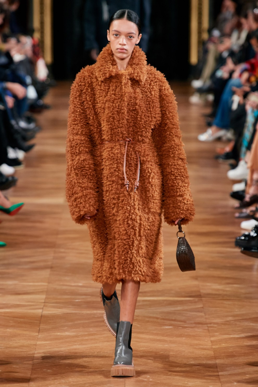 Saint LaurentПушистые пальто Teddy плавно перекочевали из прошлого сезона в новый, приобретая новые отличительные черты. У Stella McCartney появились мягкие эко-шубы в цвете ириски и пудрово-розовом оттенке, излучающие тепло в холодную погоду, у Bottega Veneta – ультра-мягкие шубы с длинной бахромой, а у Rokh – длинные кудрявые пальто в коричневой цветовой гамме.