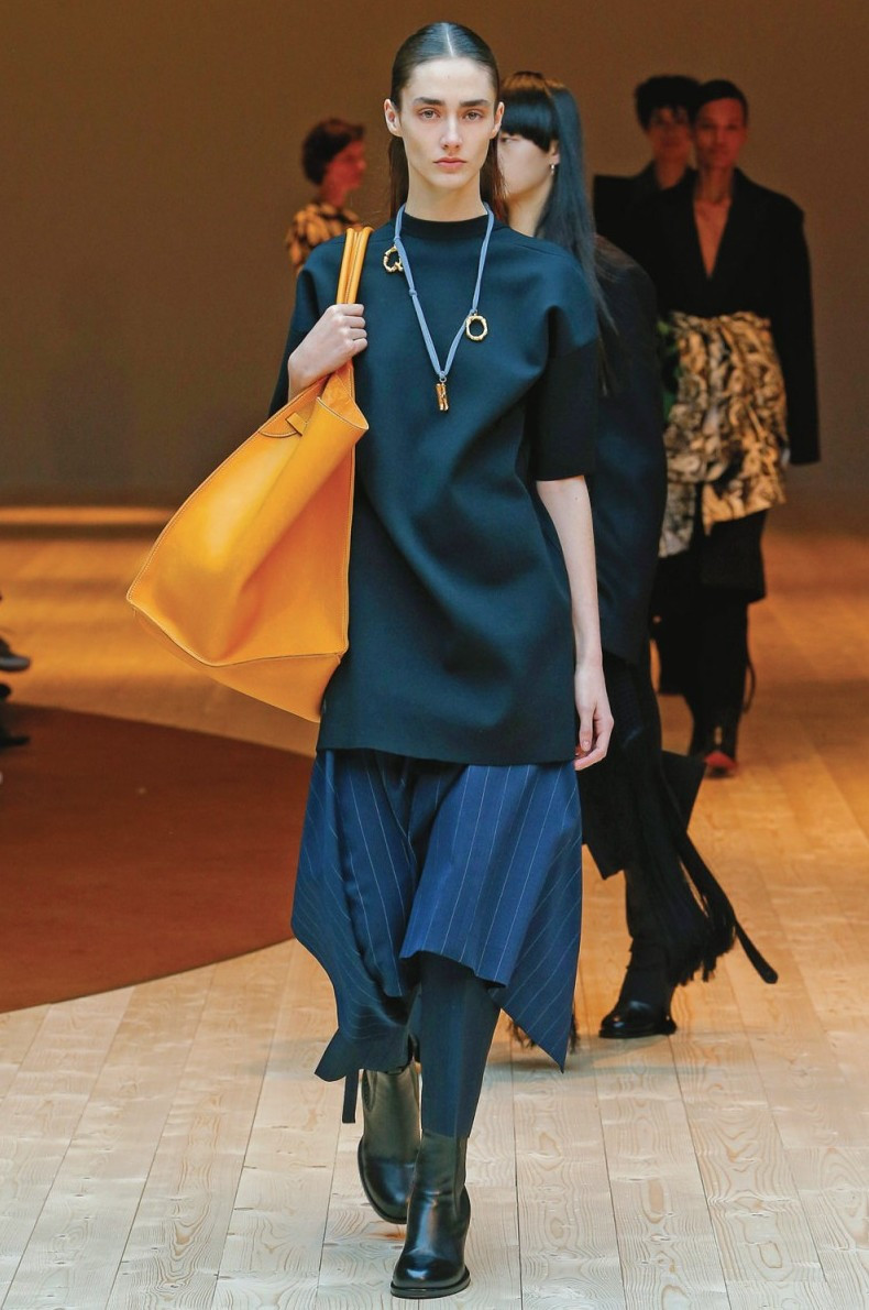 Прошлым летом самой волнующей частью женского тела были плечи — именно их полагалось выставлять напоказ. Вслед за столбиком термометра опустился вниз и модный акцент — осенью полагается подчеркивать талию. Конечно же, с помощью широкого ремня. Грубые, почти солдатские ремни можно носить с чем угодно — с пальто, свитером, брюками с завышенной талией и даже с легким платьем.