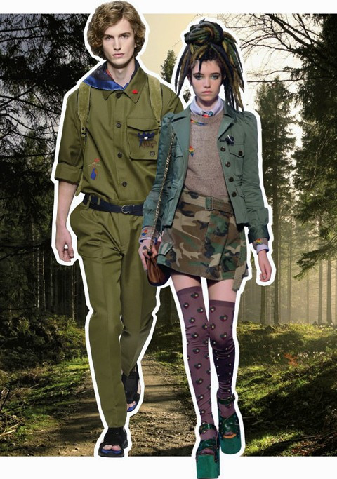 Военная форма всех эпох и родов войск щедро снабжает идеями модных дизайнеров. Стиль милитари прочно обосновался даже в дамском гардеробе: все эти гимнастерки и мундиры смотрятся на хрупких женских фигурах весьма сексуально. Тренды этого сезона — камуфляж и защитный цвет. Но если мужчины могут облачаться в армейскую «зеленку» с ног до головы, то девушкам стоит выбрать одну камуфляжную деталь, сочетая ее с чем-то более женственным.