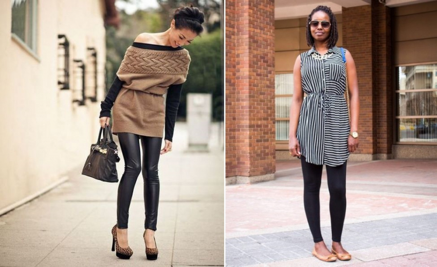 Раньше стилисты говорили, что туника и леггинсы не сочетаются. Но в 2023 году это мнение изменилось. Если у вас красивая фигура, то можете смело выбирать этот вариант и выглядеть модно, стильно и красиво.