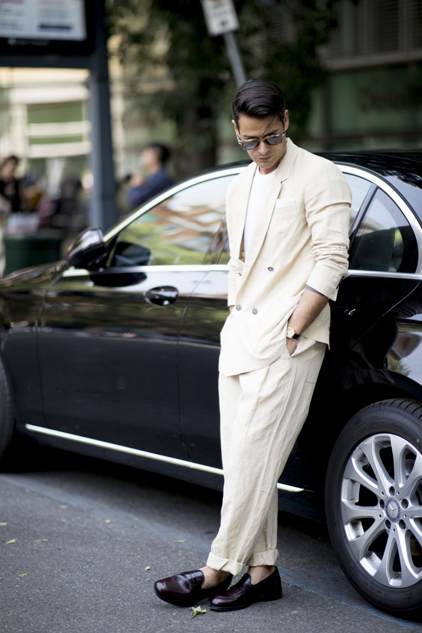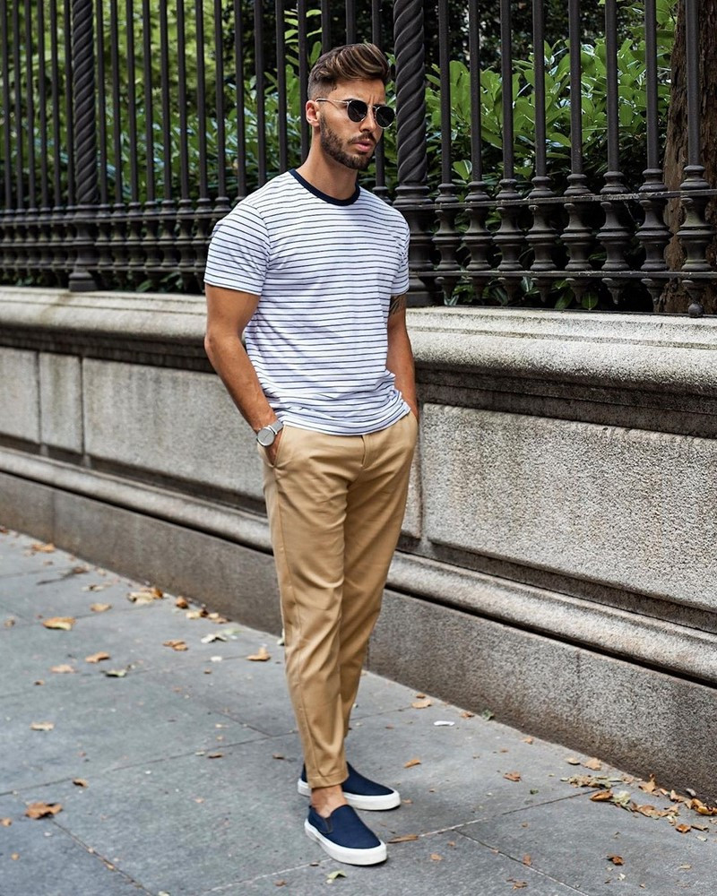 Желаевский Н., стилист: «Одни и те же белые кеды можно подать по-разному: итальянский образ (брюки чинос нескучного оттенка, например, розовые или персиковые, просторная рубашка с длинным рукавом и запахом), деловой (песочный спокойный деловой костюм, черная водолазка), повседневный (черные брюки чинос, темный кардиган, белая футболка), для встречи с друзьями (белые джинсы, белая футболка, лазурный бомбер)».