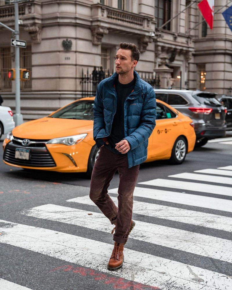 - Контраст фактур. Гладкая кожаная обувь контрастирует с вельветом и бархатом, мягкой тканью толстовки.