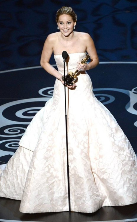 Іменинниця Дженніфер Лоурес – дівчина з розряду молодих та ранніх. Зйомки у кіно з 16 років уже принесли їй безліч нагород і номінацій. Лоуренс – лауреатка премії «Оскар» (2013), трьох премій «Золотий глобус» (2013, 2014, 2016), премії BAFTA (2014), двох «Премій Гільдії кіноакторів США» (2013, 2014) і премії «Сатурн» (2013). А ще в 23 роки юна акторка підписала рекламний контракт з Dior. Не дивно, що для червоних доріжок Дженніфер обирає вбрання виключно цього французького Дому.