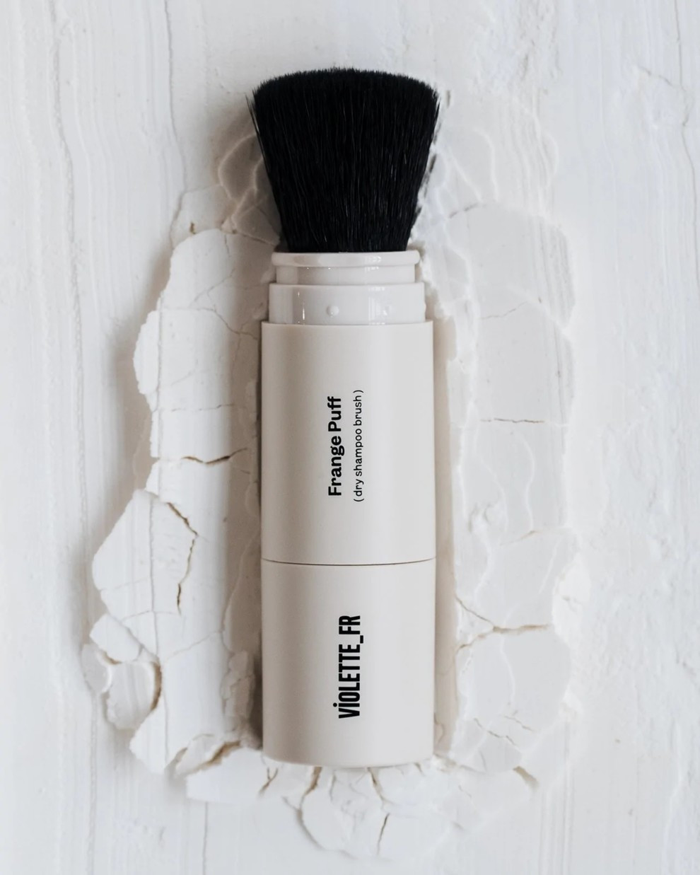 «Я хотіла щось таке, чим могла б швидко поправити зачіску упродовж дня, тому що як тільки на вулиці стає парко, або я наношу на обличчя забагато косметики, волосся одразу стає пласким», – розповідає Віолетт про те, що надихнуло її на створення інноваційного сухого шампуню Frange Puff. Цей маленький багаторазовий тюбик (який можна дозаправляти), з шампунем-пудрою та вбудованим пензликом, – інтуїтивне переосмислення аерозольного сухого шампуню. Він настільки ж портативний, наскільки ефективний для того, щоб освіжити волосся.