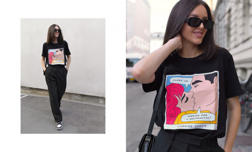 Аліна ФрендійКолекція "Ми однієї крові" розроблена на базі популярних мемів чи фразеологізмів, і це все дуже рідне для кожного з нас – іноді та сама фраза або малюнок можуть подарувати усмішку й поліпшити настрій у потрібний момент. А ще мені сподобалися фасони футболок – вони доволі «оверсайзні», а це якраз те, що я люблю!