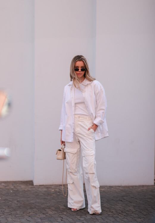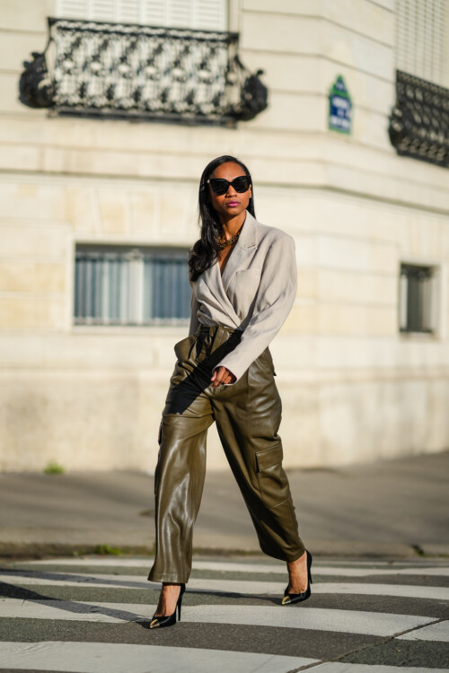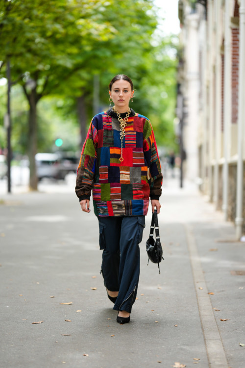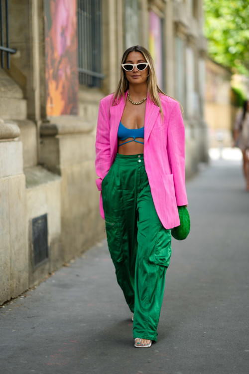 StreetstyleУ повсякденних літніх виходах дівчата вибирають штани карго із шовку або льону, базові моделі військового забарвлення, широкі штани з костюмної тканини, варіанти на гумці біля щиколоток, а також карго в соковитих відтінках сицилійського апельсина або літньої трави. Модниці комбінують штани з кроп-топами й маскулінними жакетами, одягають з трикотажними боді й базовими футболками на щодень, а також міксують зі світшотами, корсетами й об’ємними сорочками, ніби знятими із чоловічого плеча. Завершити свій вихід ви можете за допомогою грубого взуття на масивній платформі або вибрати елегантніший стиль: гостроносі туфлі або босоніжки з тонкими ремінцями. Більше актуальних образів streetstyle-інфлюенсерів дивіться в нашій галереї.