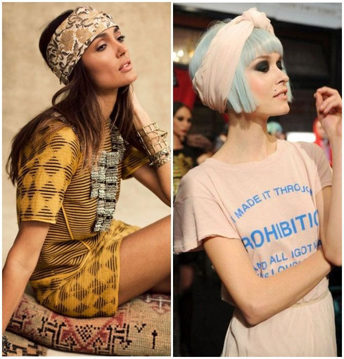 Мы уже рассказали про «голливудские» косынки, которые были в моде в далеких 1970-х, а теперь снова оказались на вершине главных трендов. Не меньшей популярностью тогда пользовались платки и шарфы, завязанные на голове в манере хиппи.