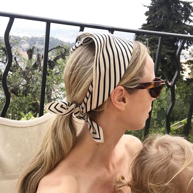 Важно, чтобы платок не был сильно затянут. Он должен лежать свободно, тогда не будет мяться прическа. Особенно интересно этот аксессуар выглядит в сочетании с солнцезащитными очками, строгим платьем простого кроя и лодочками на высокой шпильке.