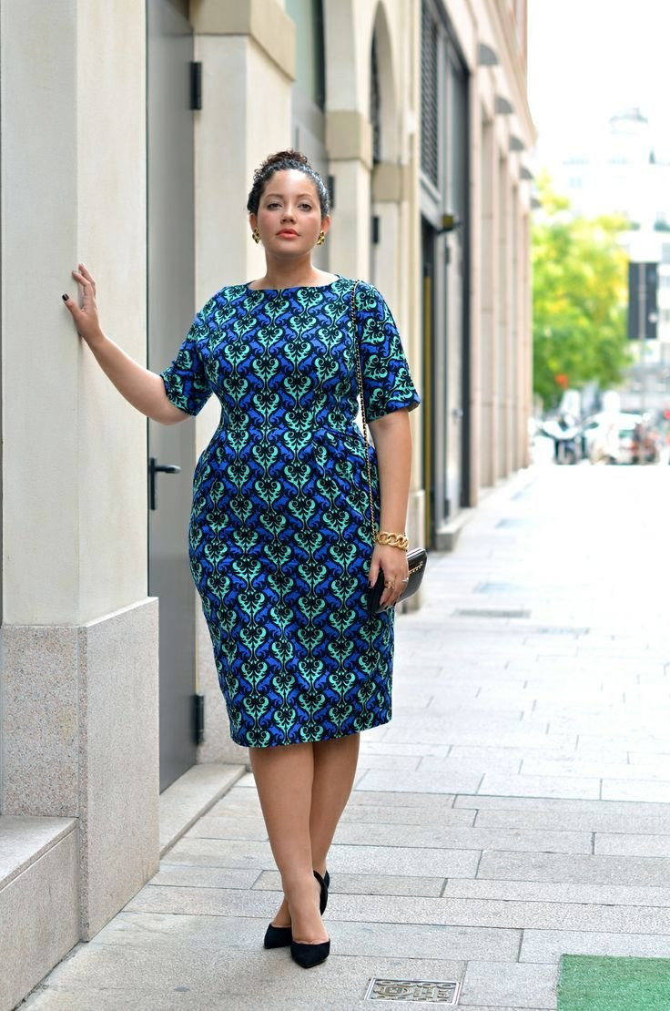 Полноватым женщинам с животом лучше всего остановиться на длине миди. Причем платье может быть не только в гармоничных темно-светлых тонах, но и с яркими принтованными вкраплениями.