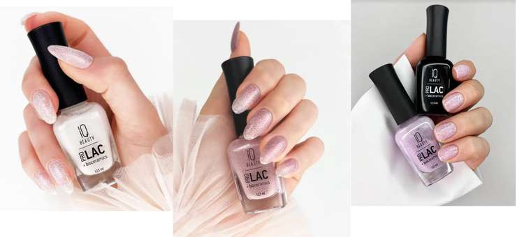 Следующая главка — для тех, кто так и не привык к гель-лаку (да, нас таких много!). Нынешним летом бренд IQ BEAUTY представил не имеющую аналогов на рынке коллекцию укрепляющих лаков с биокерамикой и крошкой Fluffy dawn.