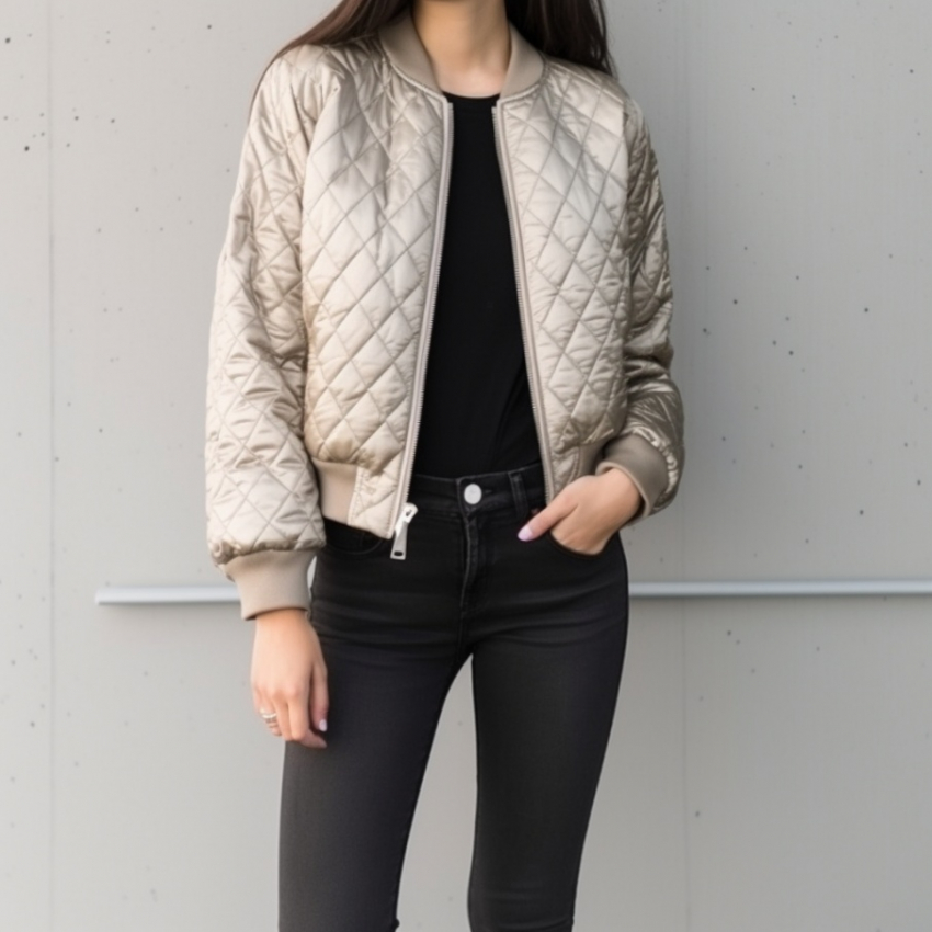 - К трендам относится дополнение куртки стёганой прошивкой. Стилисты прибегают к созданию чёткой структуры с помощью квадратов, ромбов, горизонтальных или вертикальных полос. Другим вариантом оформления является создание узорной прошивки, делающейся с помощью извилистых линий.