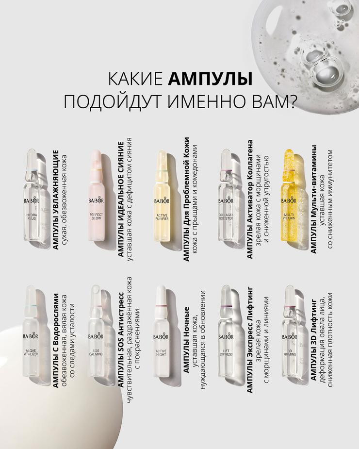 Если вы, как и мы, любите ампулы BABOR, тогда эта новость точно вас заинтересует. Под занавес лета бренд сообщил о том, что отныне в стандартном ассортименте останется 10 самых эффективных видов ампул. А вот их составы полностью новые: новые активные ингредиенты, текстуры, ароматы и, конечно, дизайн упаковки. Теперь это чистый, минималистичный белый с пастельными цветовыми кодами и понятной коммуникацией с потребителем. Плюс ко всему, составы и упаковка стали еще более экологичными.